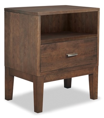 This night table is made in a transitional style and features an Autumn Wind finish with one soft-close drawer.