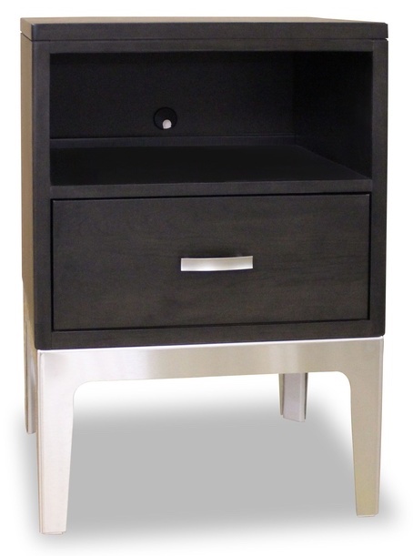 This night table is made in a contemporary style and features a Molten Night finish on solid Cherry wood.