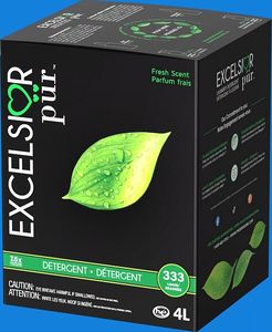 The Excelsior Pür 4 L Detergent delivers 333 loads of ultra-concentrated 7.5x formula that replaces detergent, softener, brighteners/whiteners, anti-static sheets, and includes an odor suppressant—combining everything your laundry needs in one product. Each box includes a 120 ml Stain Remover, an Eco-Dispenser bottle (3 pumps = 12 ml dose), and a 30 ml travel stain remover bottle. Available in Fresh Scent or Unscented.Read More