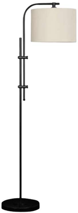 This floor lamp features a beautiful black finish that adds a striking accent to your living space. Elegantly curved with soft edges, it can be adjusted to provide targeted illumination. Topped off with a crisp white drum shade, this lamp provides a subtle and appealing classic design wherever it's placed.Read More