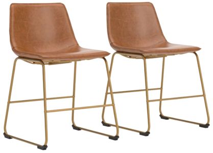 Dine in casual contemporary fashion with this chair. A retro-inspired bucket design gives it a mid-century vibe. Sleek faux leather and a luxe goldtone frame bring the look right into the present. And with a contoured seat for your comfort, it dishes out style and convenience all in one.Read More