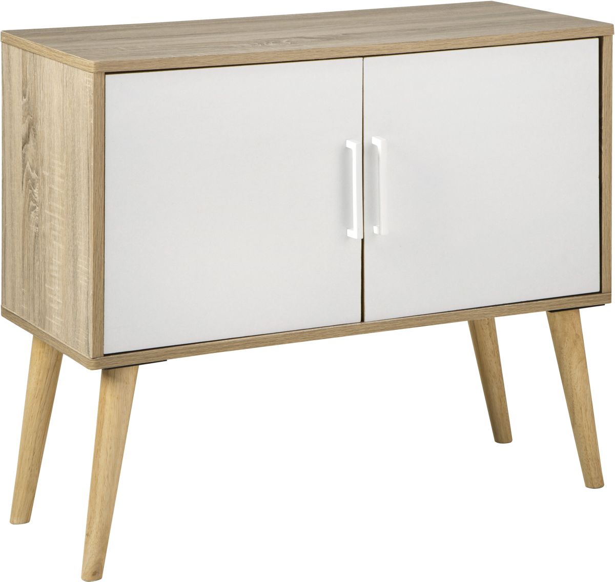 Open the door to clean-lined form and functionality with this accent cabinet. Its homey natural finish is enhanced with crisp white doors and pulls. Adjustable shelf caters to your needs.Read More