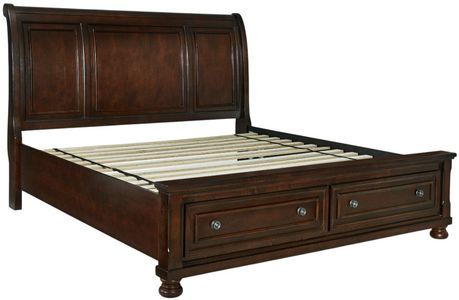 Includes sleigh headboard, sleigh rails and storage footboard