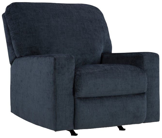 Looking to make a bold statement with color? Liven up your living room with this rocker recliner. Its trend-right navy blue upholstery adds a playful pop of color to your decor. Pairing posh style with everyday comfort, this piece is a welcome addition to contemporary spaces.Read More