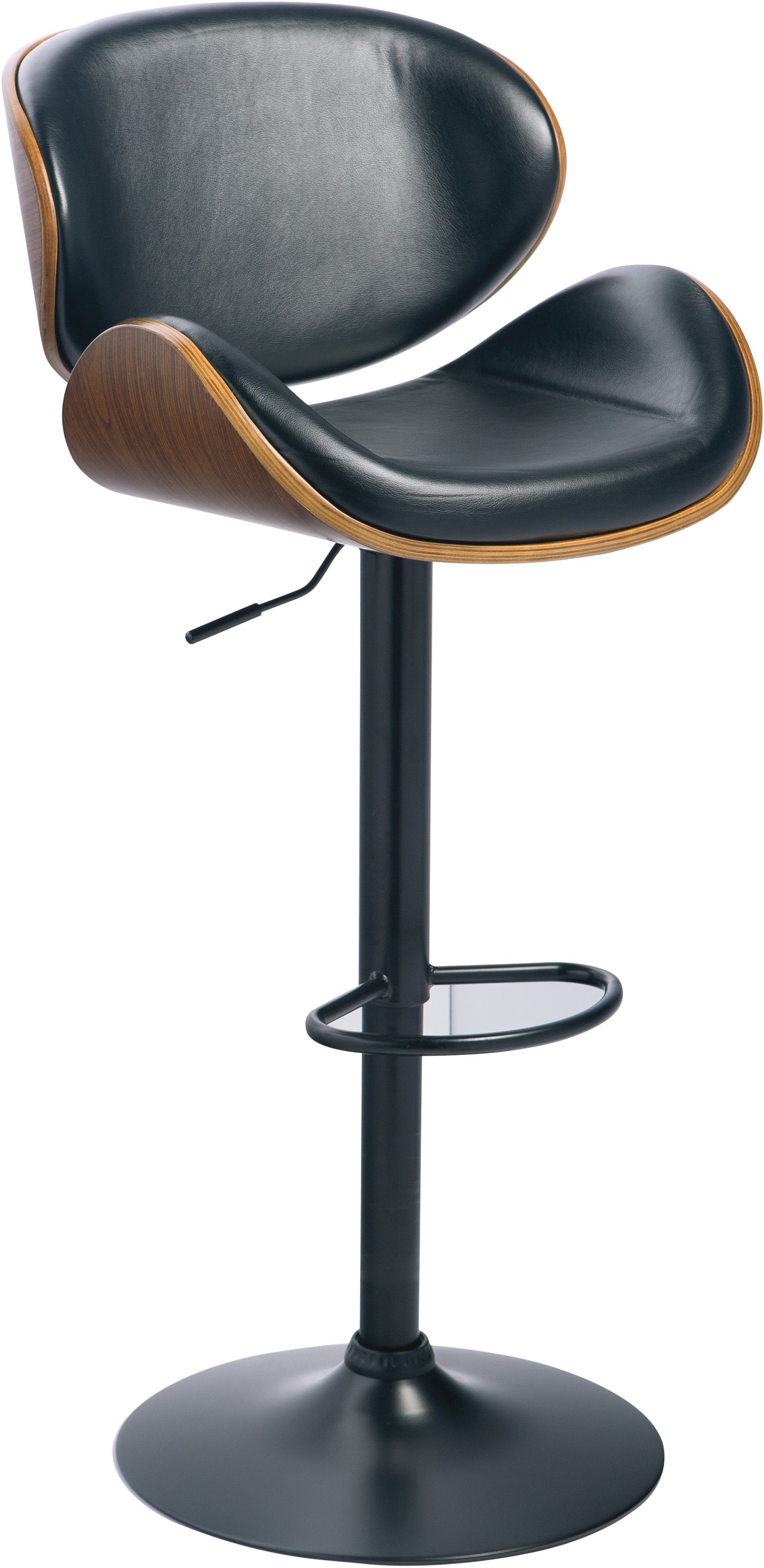 Style takes quite a modern turn. Sporting a distinctively contoured back and seat design, this upholstered swivel bar stool is sure to bring an elevated look to your living space. Wrapped in a brown faux leather upholstery, the seating area’s artful contours are accentuated with a faux wood finish.Read More