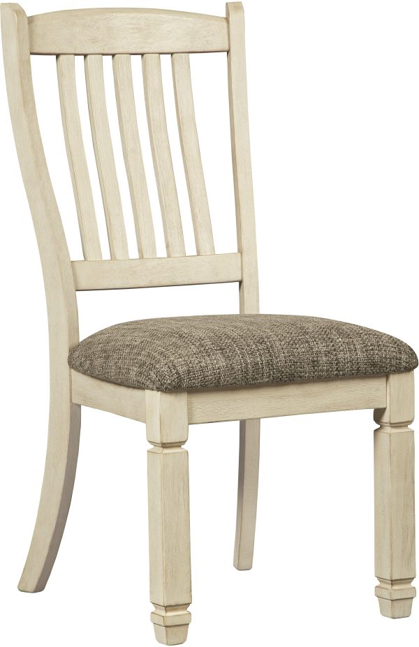 Decorate your cottage dining room with these Bolanburg dining chairs upholstered in a coarse, woven fabric, made for comfortable meals and conversation.