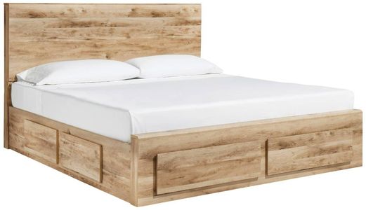 Includes queen panel headboard, storage footboard, 2 under bed storage units, rails and roll slats